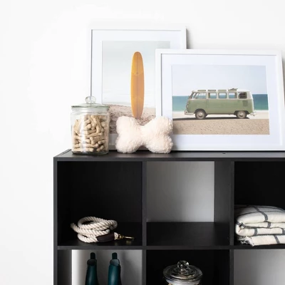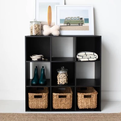 Keep clutter out from underfoot with this nine-cube organizer. It’s sleekly stylish with a matte black finish and subtle replicated wood grain, all while keeping your books, knickknacks and other items stored away. The perfect marriage of flair and function, this organizer is an ideal addition to any busy living space. Signature Design by Ashley is a registered trademark of Ashley Furniture Industries, Inc. ​