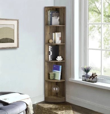 - Decorative Home Shelving: We designed this corner bookcase with a wood oak finish to blend in and elevate the look of your décor.