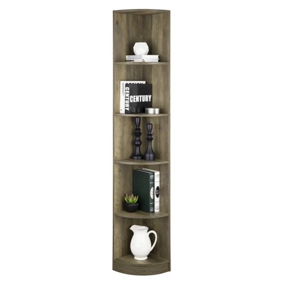 - This corner wall shelf bookcase is designed to transform any corner in your home into functional and decorative storage.