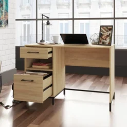 Contemporary from every angle, the spacious 54″ x 54″ Modern Life L Desk in matte finish adds sophistication to any space. Featuring trendy hardware and frame in a durable powder-coated gold finish. This desk will give the ‘wow’ factor to any home office. A smart accessories drawer with Euro, smooth-glide drawer slides keep everything organized and out of sight. Innovative power tray provides easy access to built-in power and charging port. The sophisticated design provides a perfect place to set up your laptop, enjoy a little extra storage for office supplies, and update your home décor.