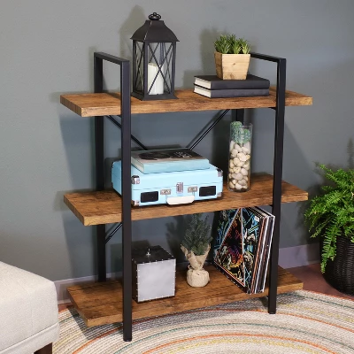 Sunnydaze Decor Sunnydaze 3 Shelf Industrial Style Wall-Mounted Floating Shelf With Wood Veneer Shelves